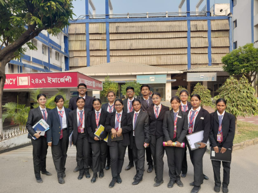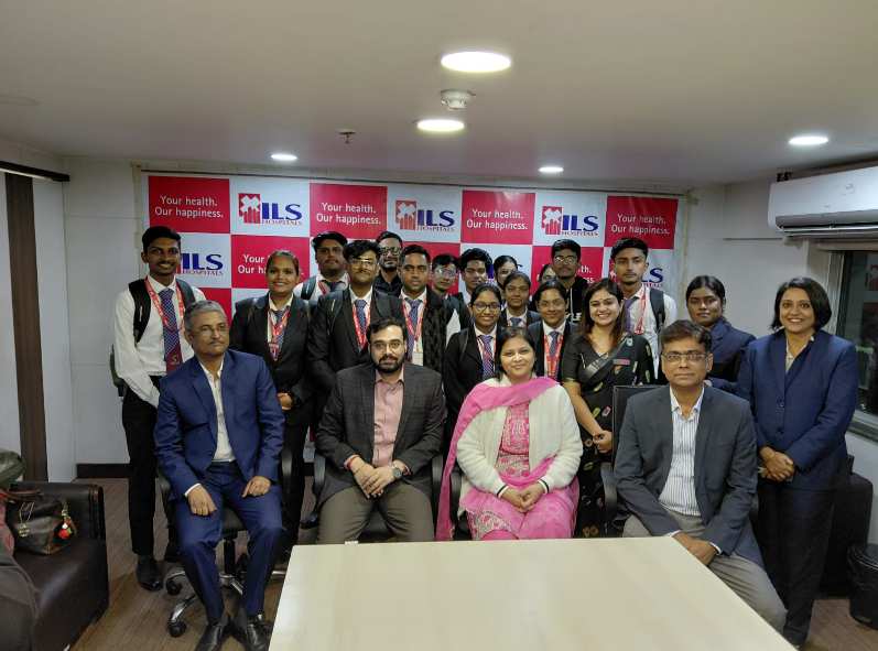 As part of experiential learning, the Hospital Management students of SBIHM undertook an educational visit to ILS Dumdum, Hospital. The visit aimed to familiarize students with hospital infrastructure, administrative departments, patient flow management, quality control systems, and healthcare service delivery. The students gained first-hand exposure to real-world hospital management practices, enhancing their understanding of healthcare operations and professional standards.