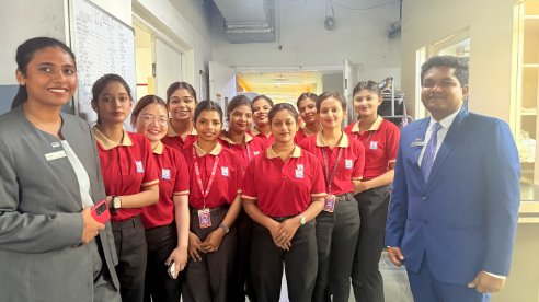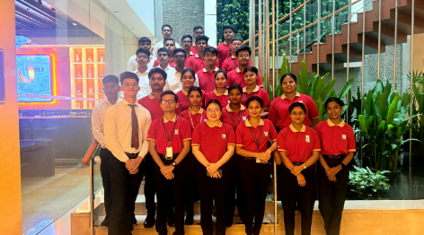 Hotel Management students of SBIHM visited a luxury property – Hilton Genome Valley Resort & Spa, Hyderabad during their Hyderabad excursion. Upon arrival students were taken to a conference room & an extensive session was taken by hotel representative. He explained in detailed about the day to day operation that takes place in a hotel. After that the students were divided in small groups & were taken to different departments to understand their operations. They got to see how the daily linens are cleaned & ironed. They were taken to different categories of rooms & guided about the room preparation standards, quality checks, housekeeping inventory flow. The guided tour ended with a sumptuous Hyderabadi biriyani offered by the hotel. The take away for our students were the importance of professional communication & high standard of guest relations.