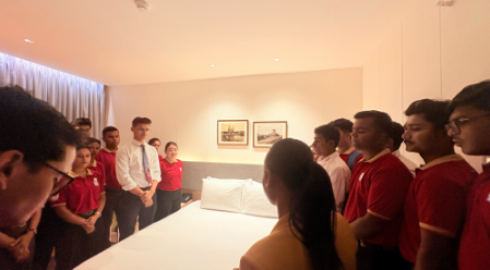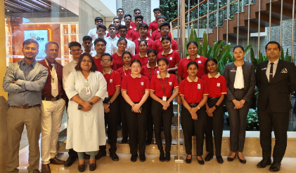 Hotel Management students of SBIHM visited a luxury property – Le Meridien, Calangute, Goa during their Goa excursion. The property is owned by Marriott International and is now listed among other major Marriott brands like Sheraton, Westin, and The Ritz-Carlton. Students were guided about the check-in/check-out procedures, guest relations, reservations systems. They were taken to different categories of rooms & guided about the room preparation standards, quality checks, housekeeping inventory flow. The take away for our students were the importance of professional communication & high standard of guest relations.
