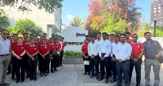 Hotel Management students of SBIHM visited Green Park Hotel, Hyderabad during their Hyderabad excursion. Students were divided into small groups & a detailed hotel tour was given by hotel representatives. They explained about the day to day operation that takes place in a hotel. The take away for our students were the importance of professional communication & high standard of guest relations.